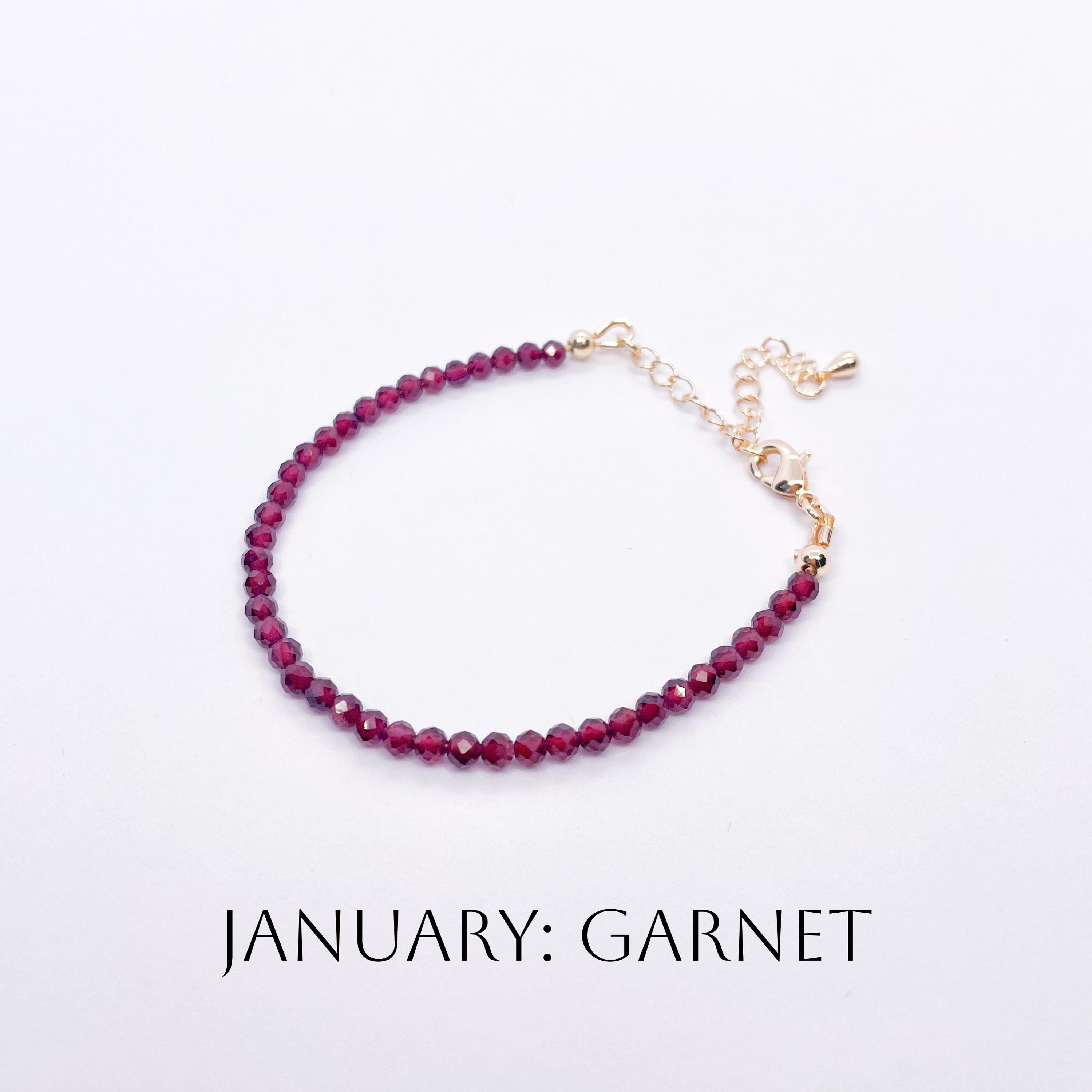 All beads are around 3mm, except the July Birthstone Ruby (lab-made), which is 2mm and intense pinkish red.