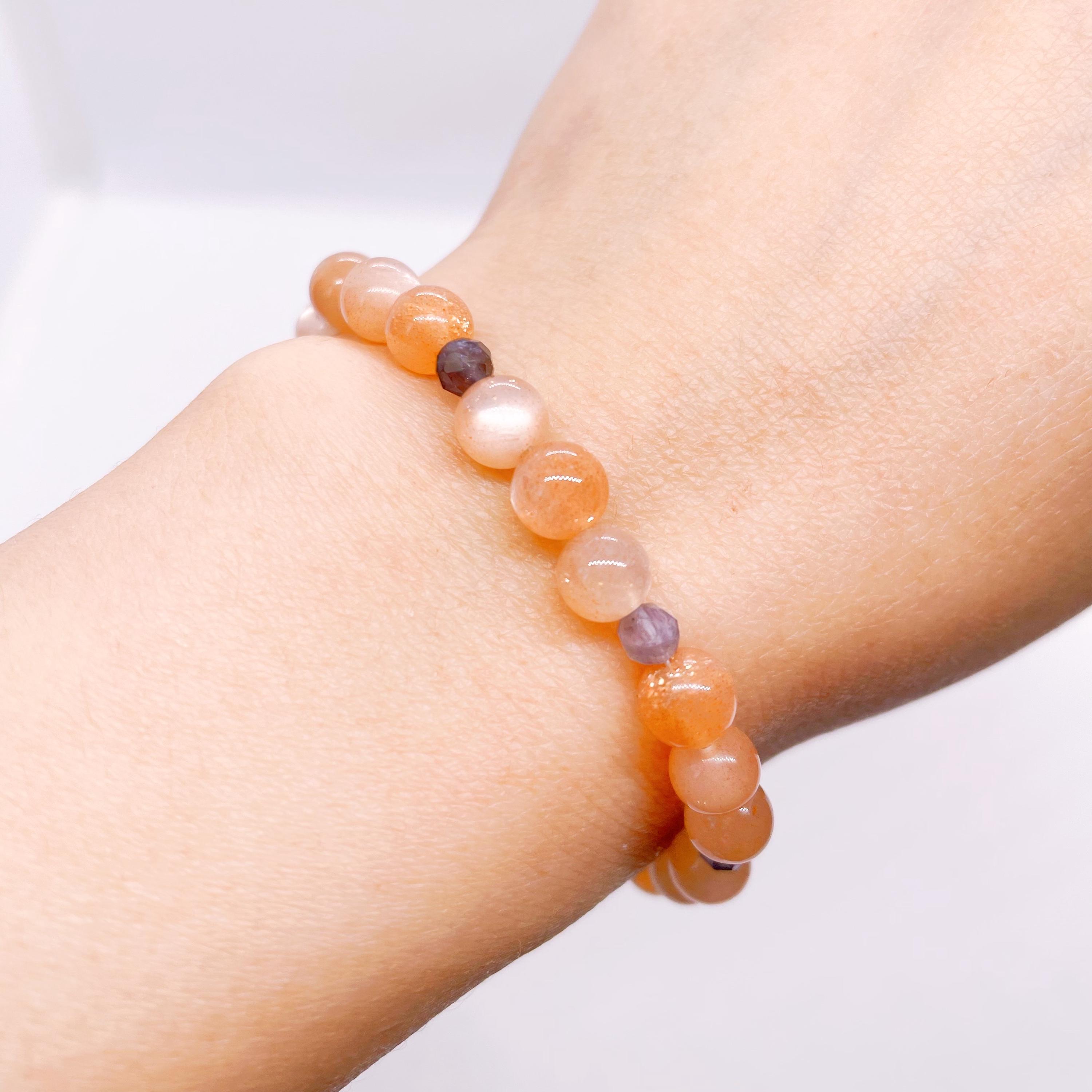 Complete your look with the matching peach moonstone bracelet, which can fit wrist measurements from 14cm to 19cm. Customization is available; just drop me a message.