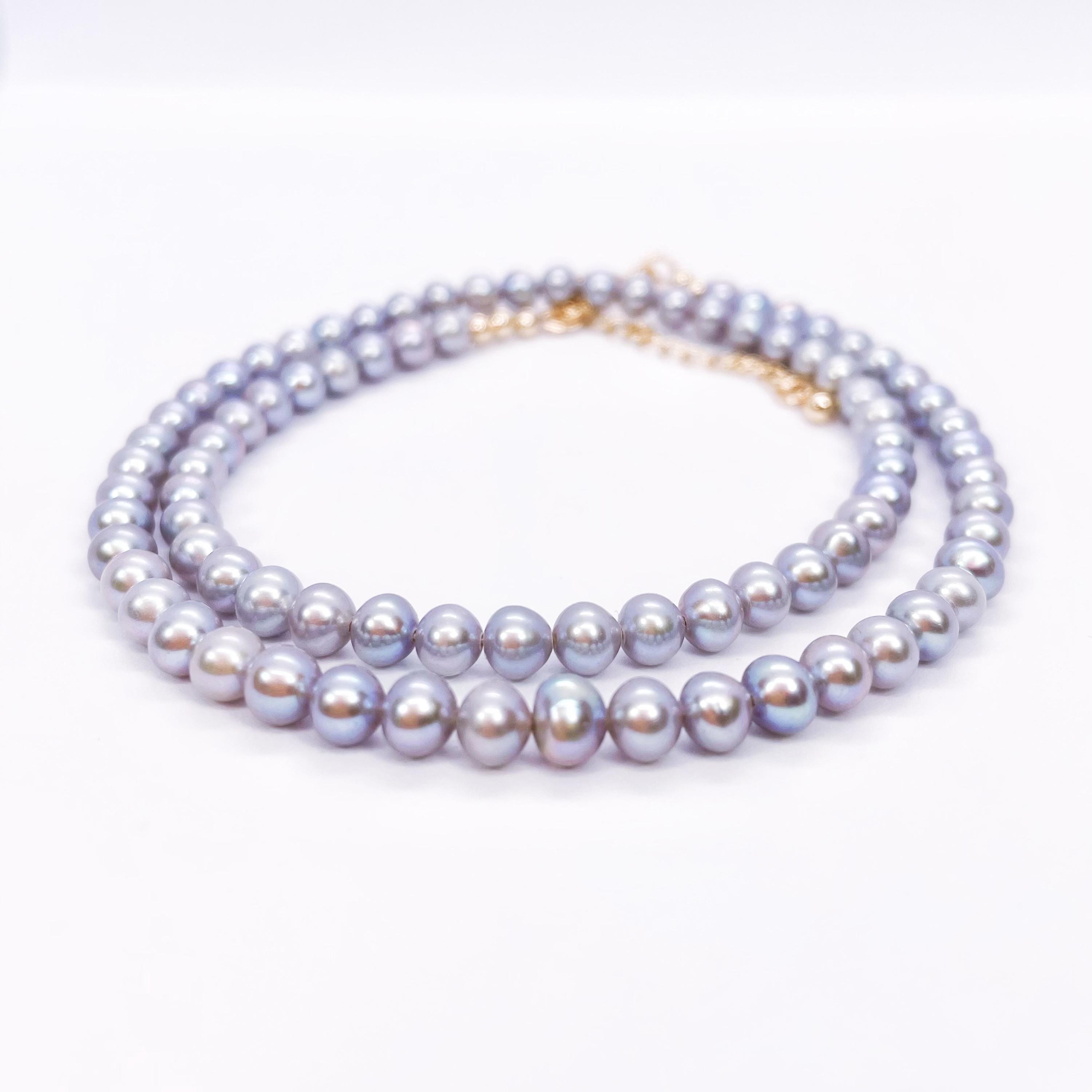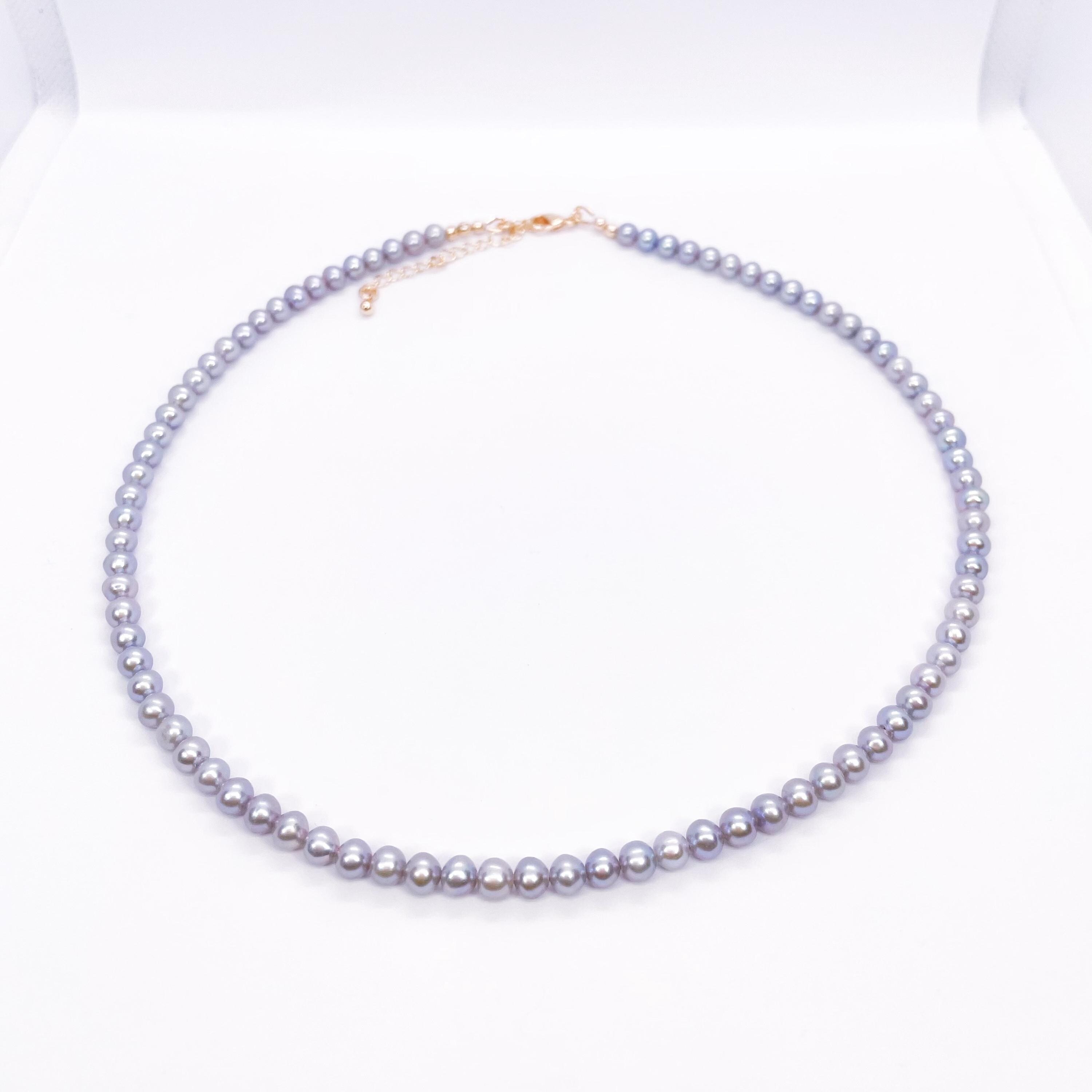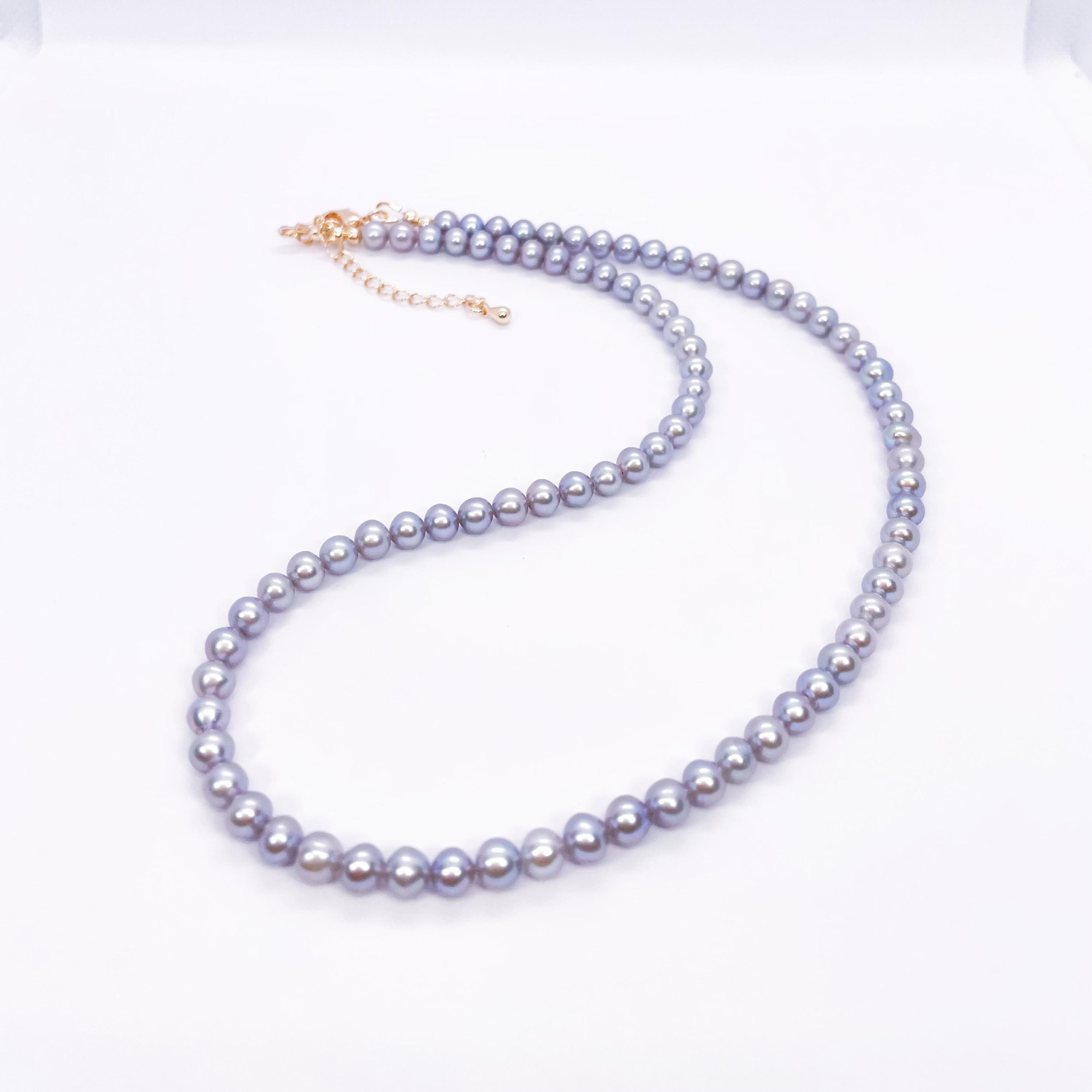 This Freshwater Pearl Necklace features a graceful strand of bright gray pearls, offering a modern take on a timeless classic. It is easy to pair with both casual outfits and more refined looks.