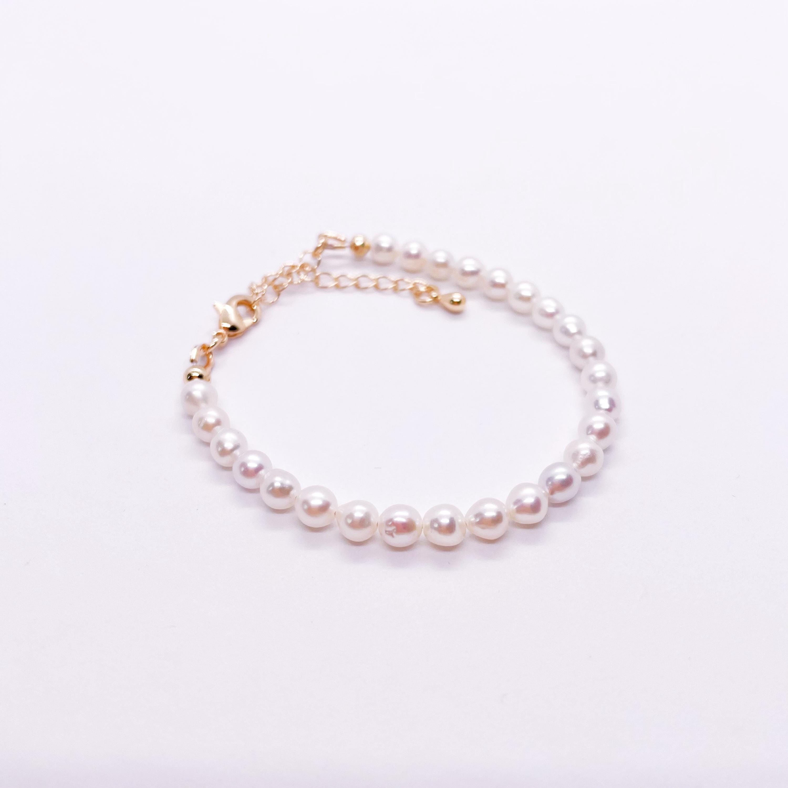 Freshwater pearl (4.5–5mm), brass, & steel beading wire.