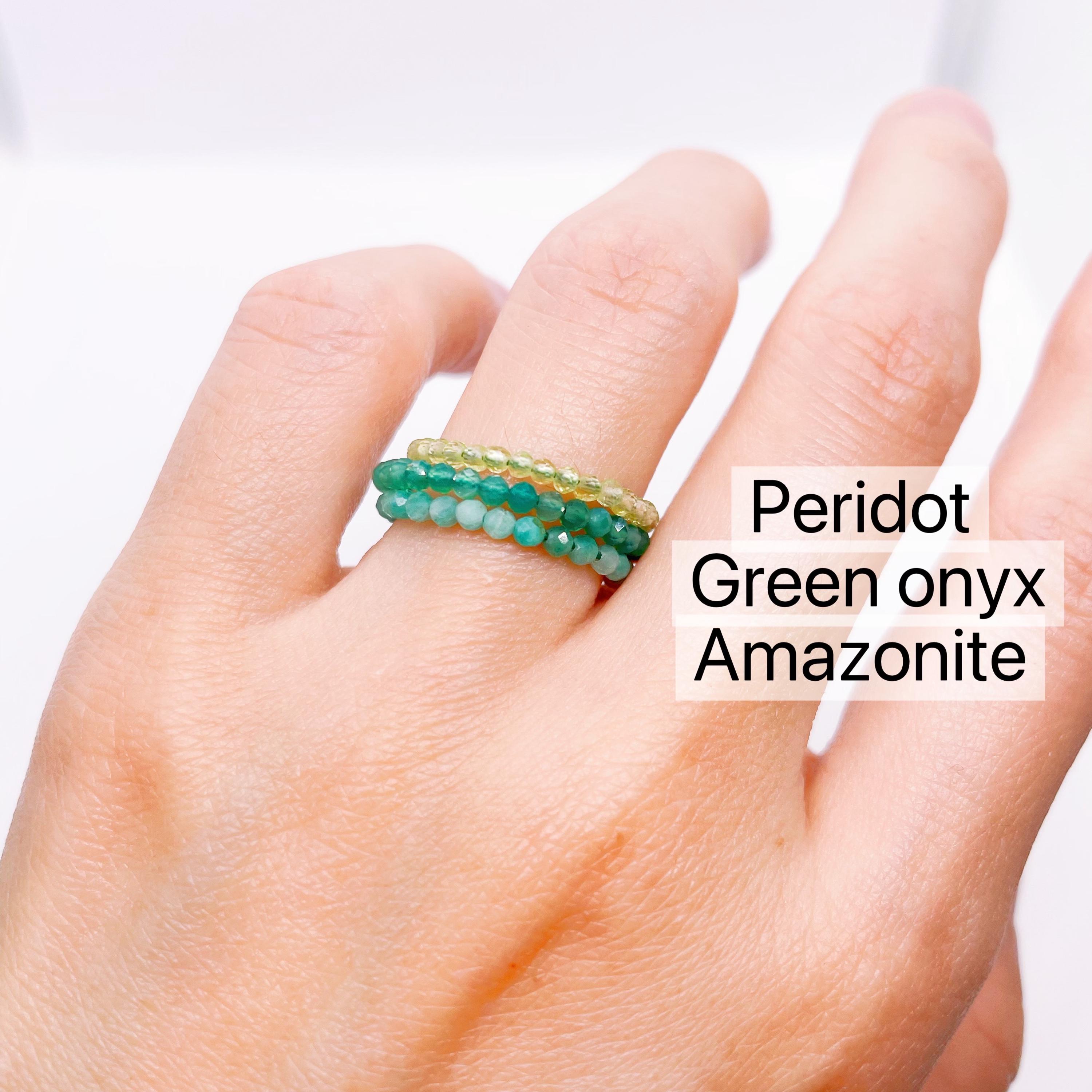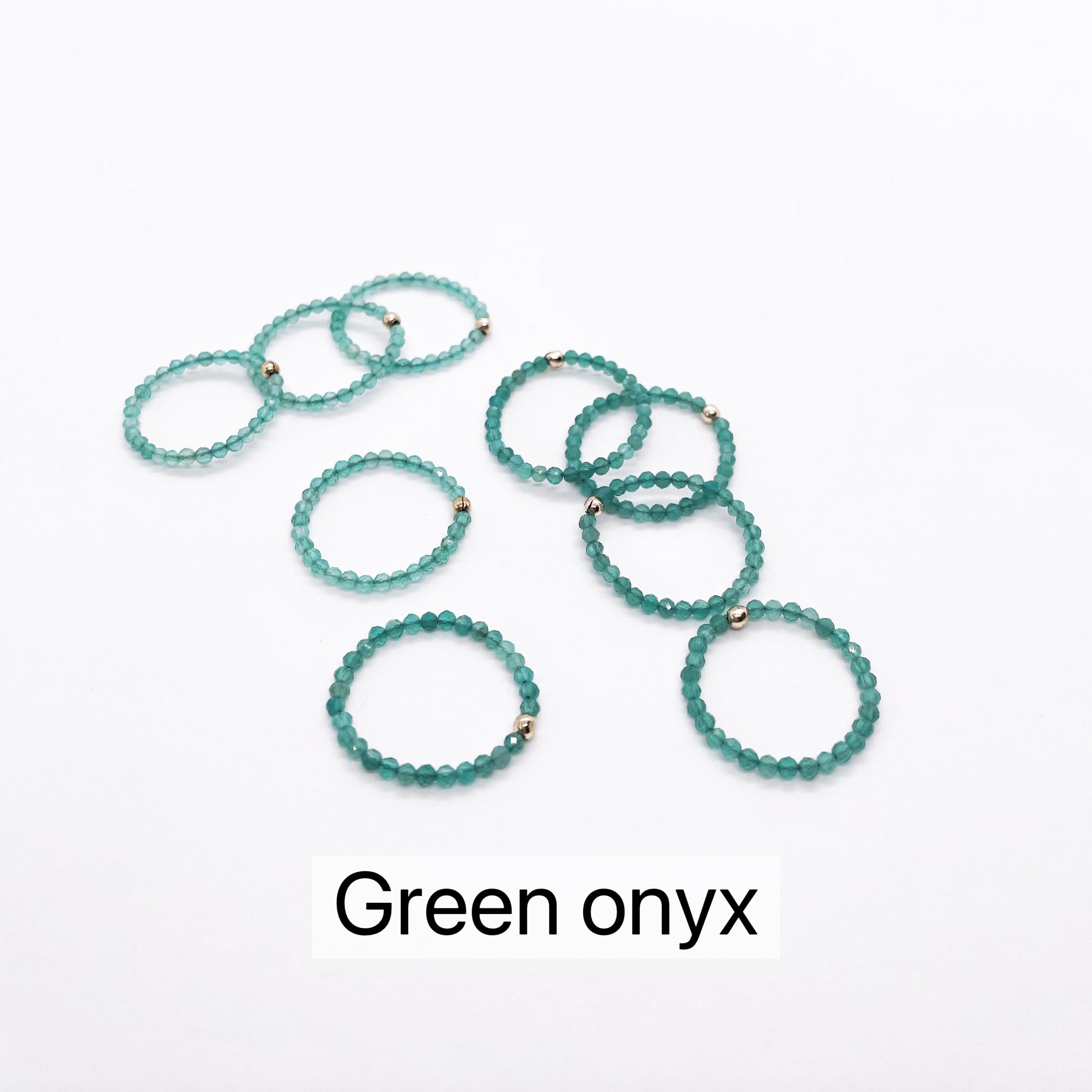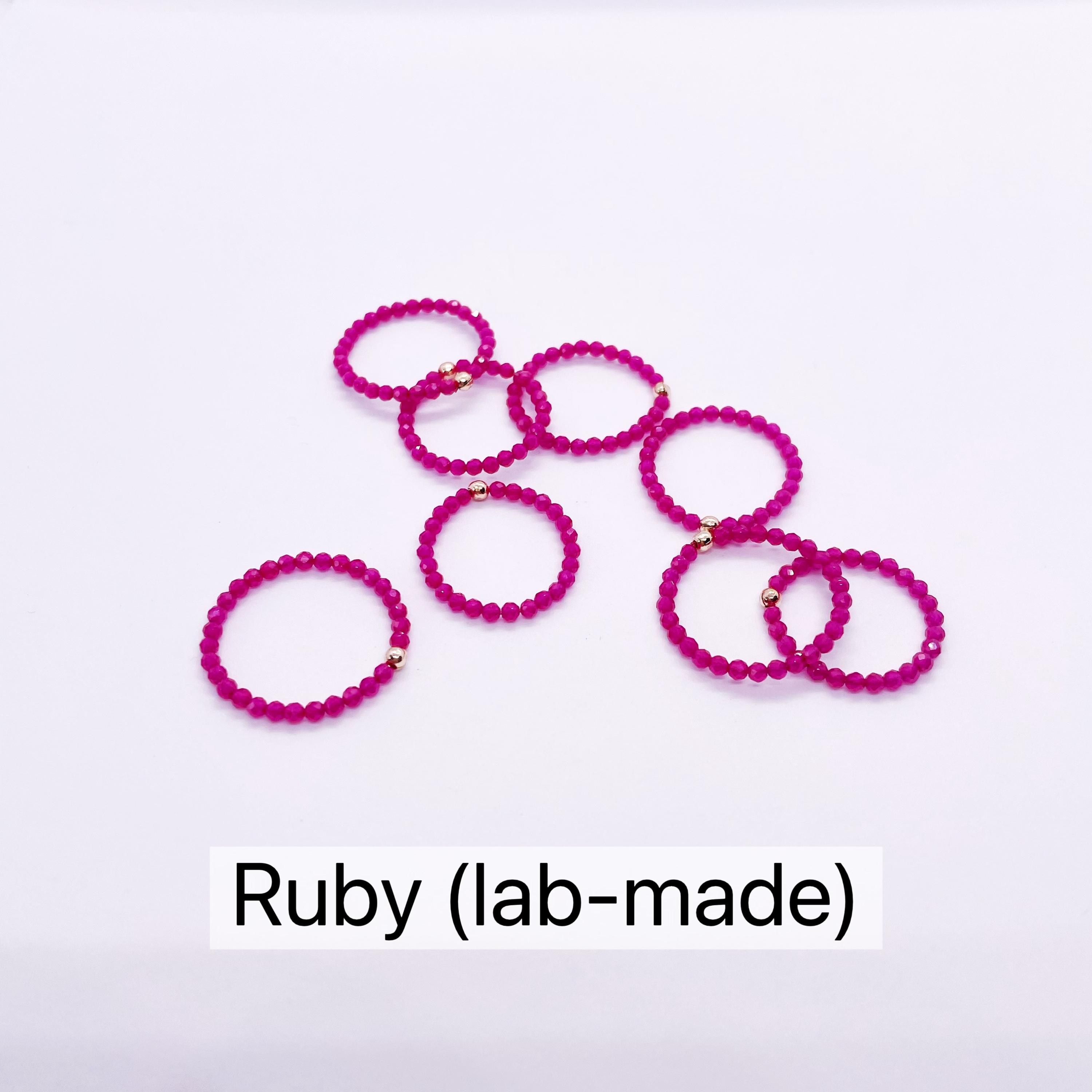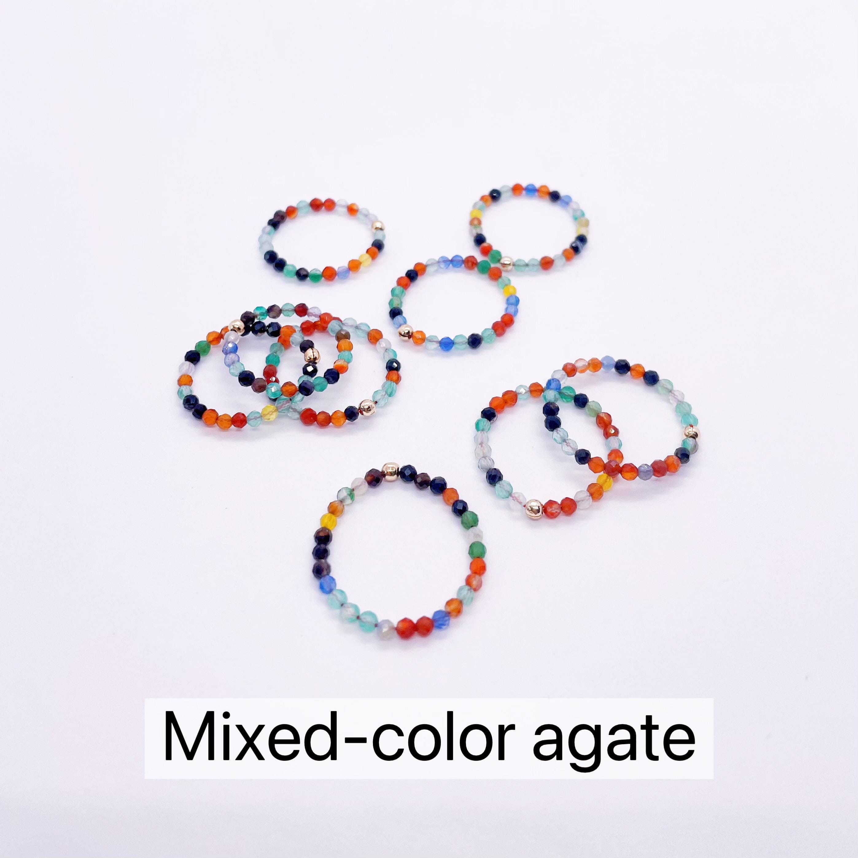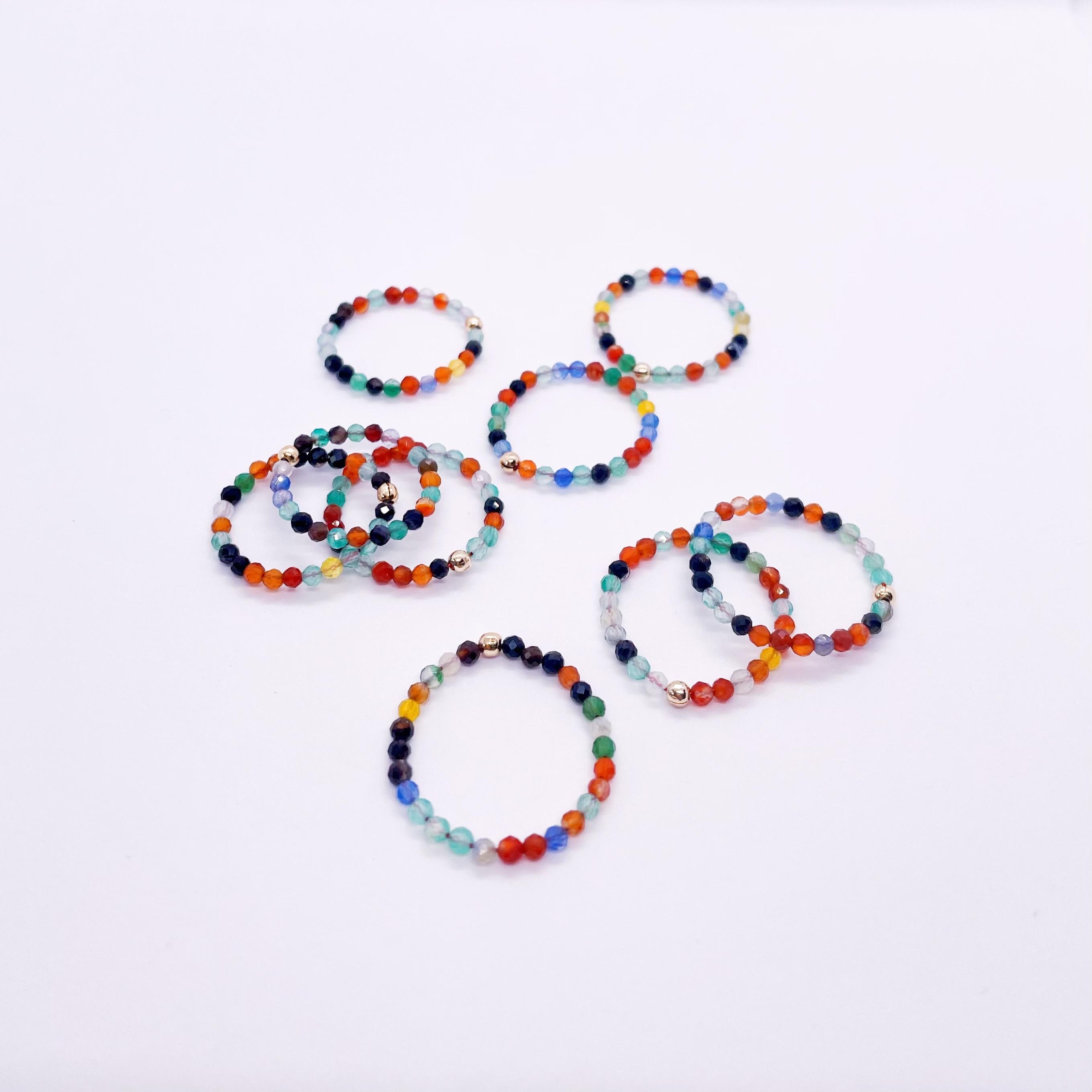 These dainty stackable rings are made with 2mm natural faceted crystal beads, offering a subtle sparkle that catches the light with every movement.
