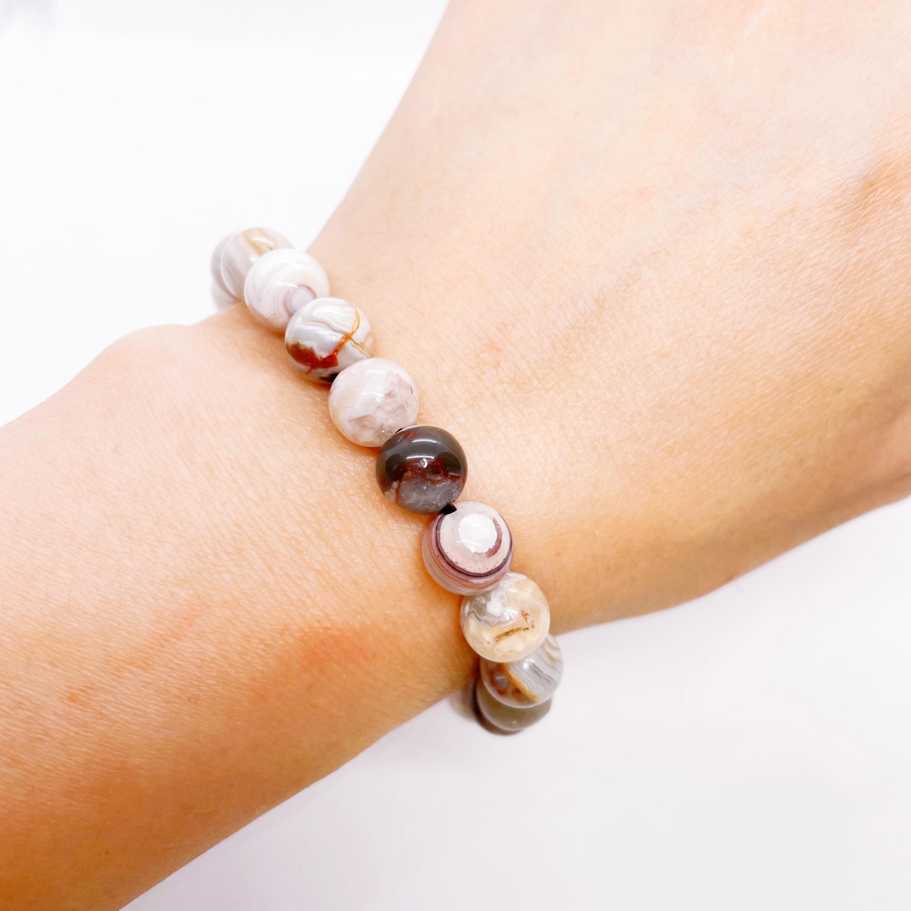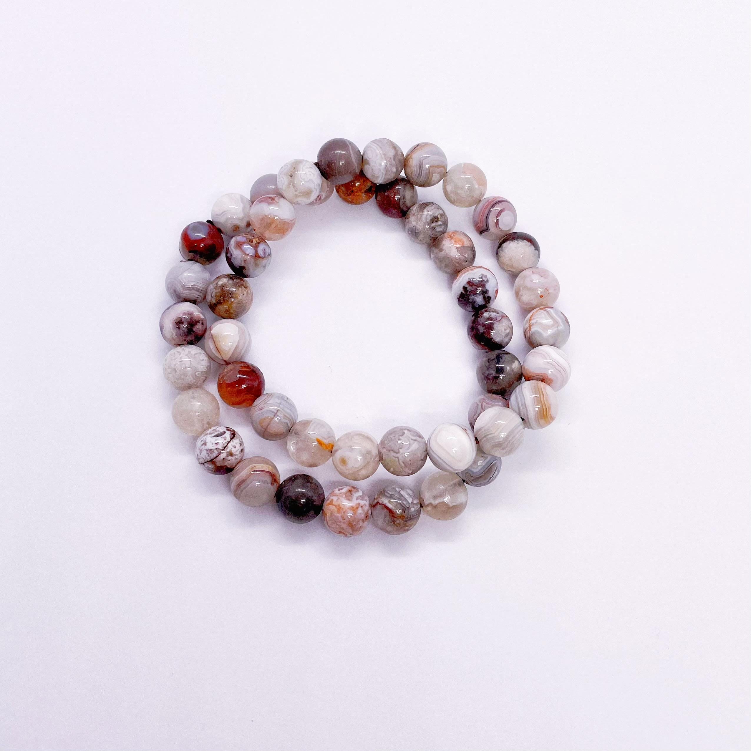 Crazy lace agate bracelets in 6mm and 8mm sizes. You will definitely love the intriguing banded patterns.
