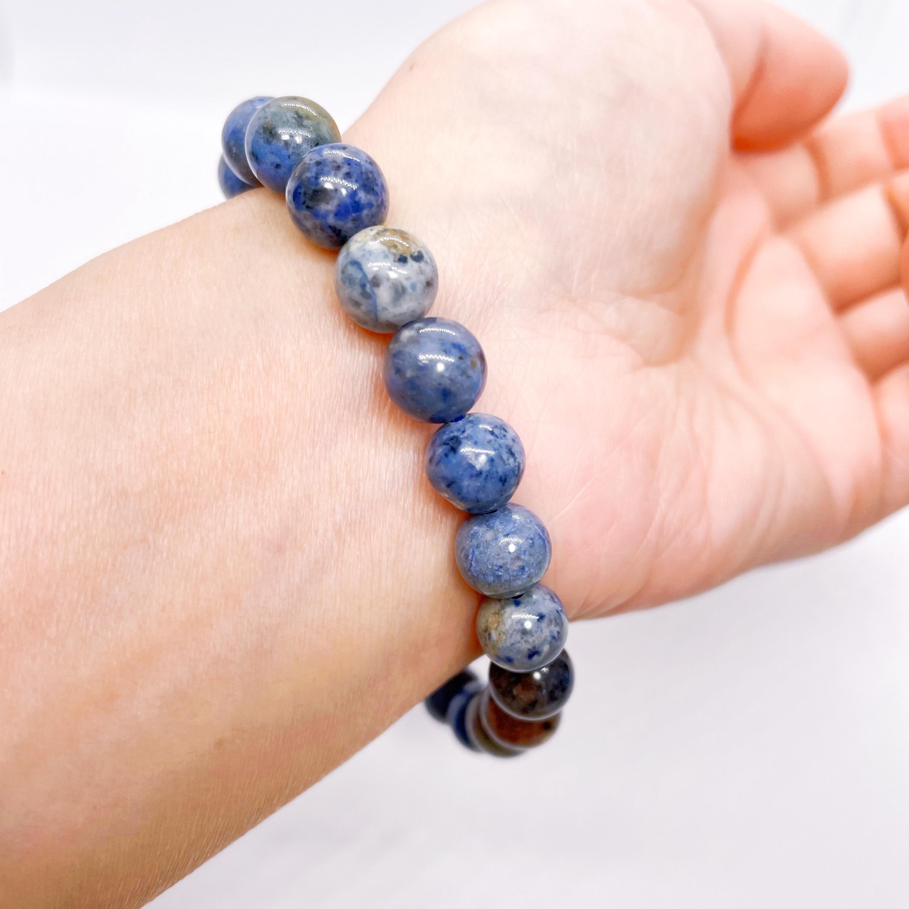 Sodalite is typically a deep blue mineral that gets its name from its sodium content. Apart from blue, sodalite can be gray, yellow, orange or pink. Sodalite is said to bring logic, inner peace, and calming energy. It is also believed to protect its wearer from negative energy and to help those who wear it to see the positive sides of others.